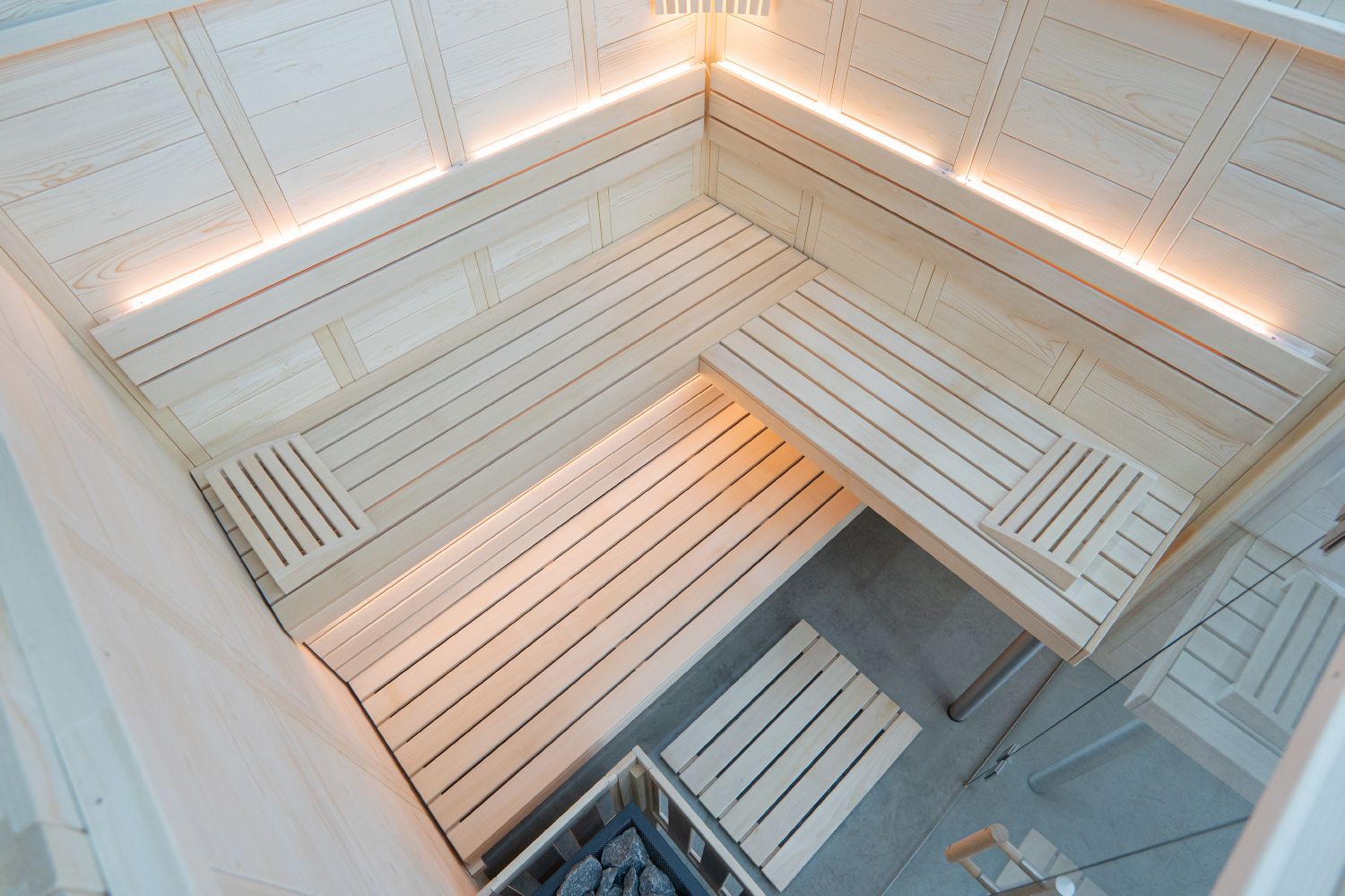 - Stimmungsvolle Beleuchtung (Optional): Schaffen Sie Ihre persönliche Wohlfühlatmosphäre mit der optionalen LED-Beleuchtung. Passen Sie die Lichtstimmung individuell an und verwandeln Sie jede Saunasitzung in ein unvergessliches Erlebnis.